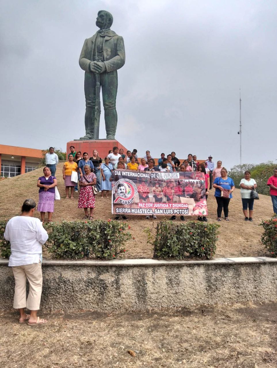 La manifestación se llevó a cabo en el monumento a Emiliano Zapata, ubicado en el Centro Cultural de la Huasteca Potosina, donde participaron mujeres de origen tenek, náhuatl, chigüí y mestizo, quienes recordaron que el 8 de marzo representa una fecha de memoria y resistencia, más que de festejo.