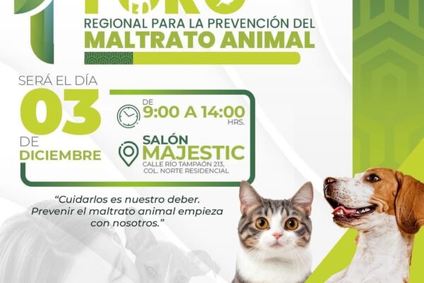 #CiudadValles | La dirección de ecología municipal convocó a la ciudadanía al foro regional de prevención contra el maltrato animal, que se realizará el 3 de diciembre en el Salón Majestic, en Norte Residencial.