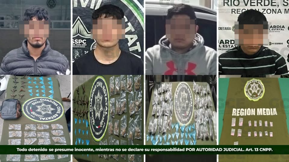 En la colonia Juárez, en Valles, fue arrestado Diego “N”, de 18 años, a quien le aseguraron 20 dosis de metanfetamina, 20 de marihuana, ponchallantas y una motocicleta. En el fraccionamiento Tecnológico cayó Nahir “N”, de 20 años, con 16 dosis de “cristal”, 22 bolsas de marihuana y más ponchallantas.