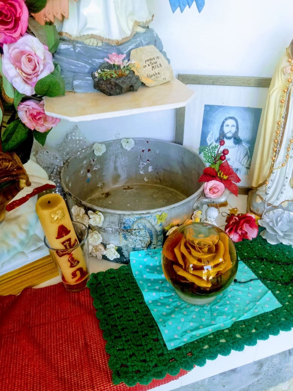 El grito de doña Esmeralda resonó en la casa, llamando a su esposo para que compartiera su descubrimiento. Él, también maravillado, corroboró lo que sus ojos veían. La noticia corrió como pólvora, y al día siguiente, llamaron al padre del pueblo para que viniera a ver el fenómeno. Este, al comprobarlo, decidió comunicar a su obispo, quien mostró interés en llevarse la olla para someterla a estudios. Sin embargo, doña Esmeralda se opuso firmemente. La Virgen debía quedarse allí, ese era su hogar, el lugar donde su luz había comenzado a brillar.