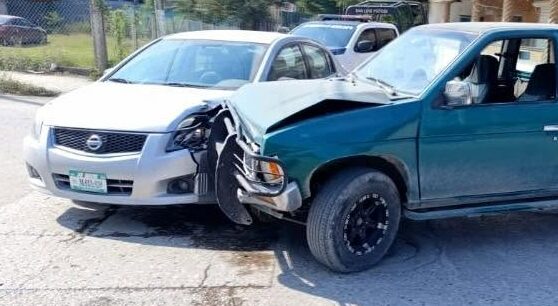 El choque ocurrió en el cruce de las calles Estadio y Sabino, cuando una camioneta Nissan verde, de modelo antiguo y conducida por un joven procedente de la capital potosina, se incorporó a la vialidad sin respetar el alto correspondiente.